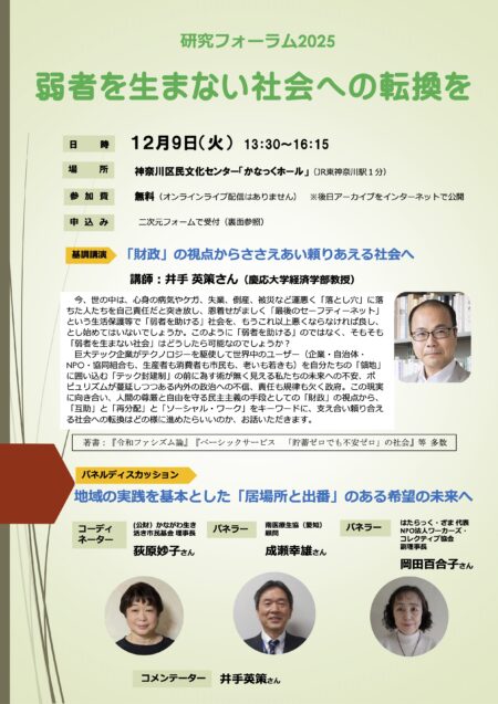 【基調講演】 【パネルディスカッション】 コメンテーター:井出英策(慶應大学経済学部教授) |