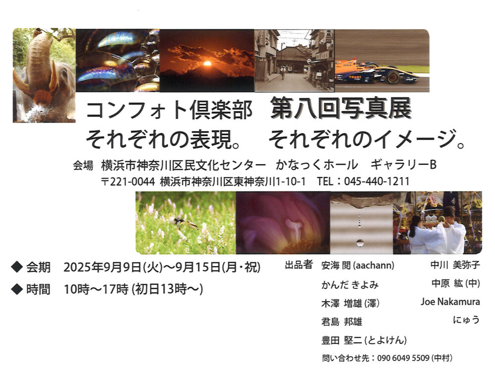 コンフォト倶楽部メンバー各自が撮り溜めた写真をA3ノビサイズで展示いたします。