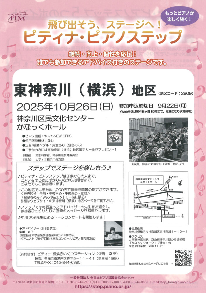 【ホール】ピティナ・ピアノステップ 東神奈川(横浜)地区(実施事務局:ピティナ横浜赤いくつステーション)
