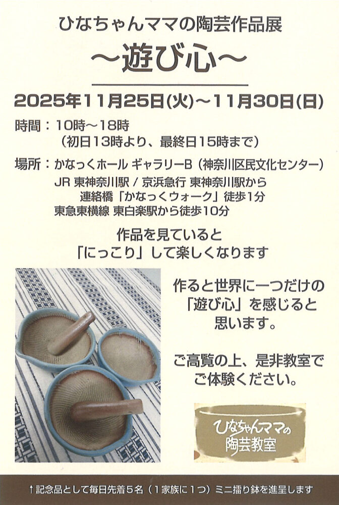 【ギャラリーB】ひなちゃんママの陶芸作品展 ~遊び心~