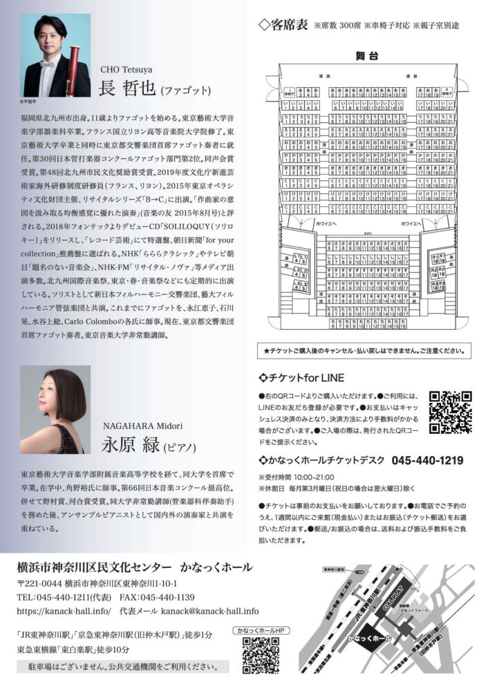 2025年度新企画の第2回目。2月は、若手実力派のフォゴット奏者長哲也氏をお迎えいたします。ピアニストは永原緑氏。お仕事終わりに鑑賞しやすい、夜公演(19:00開演)です。1日の疲れを癒すファゴットとピアノの素敵な演奏をホールでご鑑賞ください。