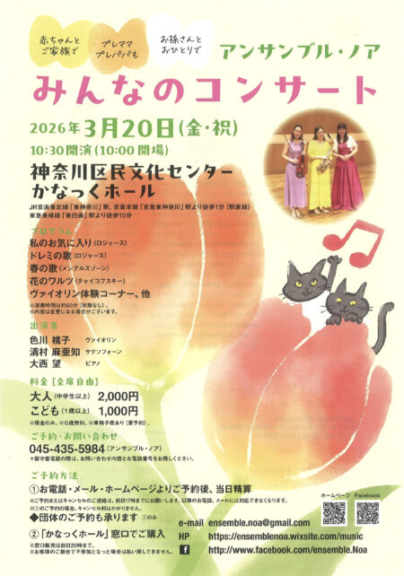 アンサンブル・ノア 045-435-5984 https://ensemblenoa.wixsite.com/music