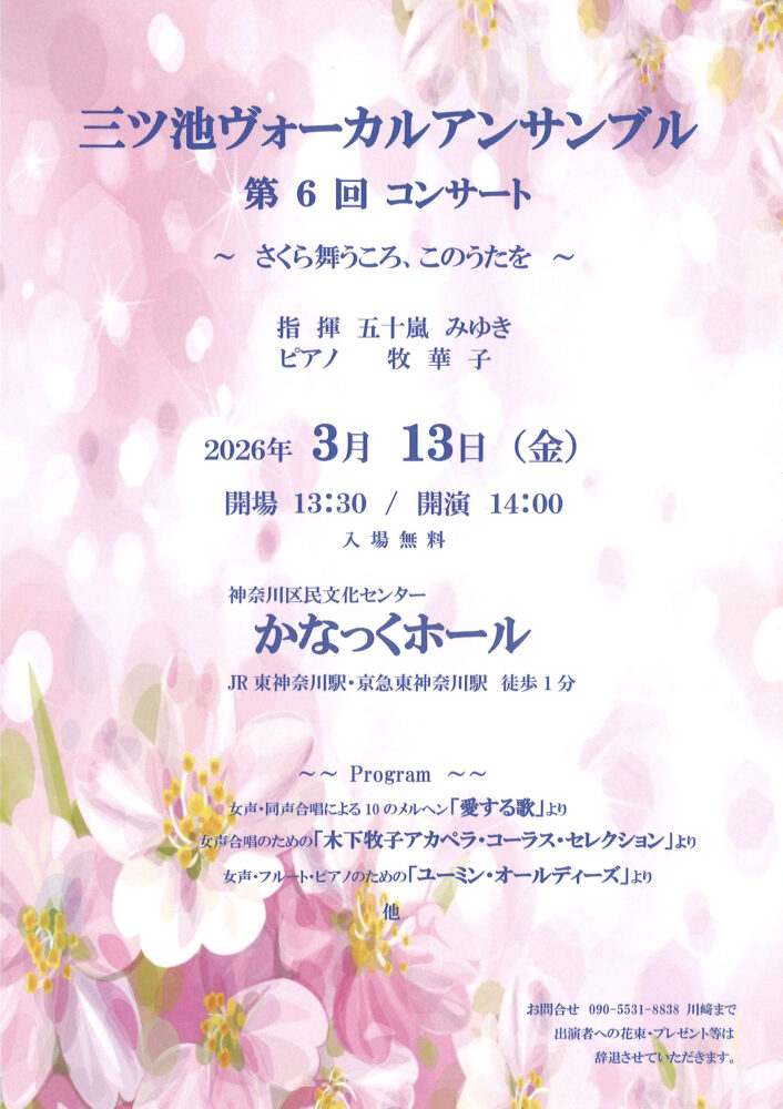 三ツ池ヴォーカルアンサンブ 090-5531-8838(川﨑)