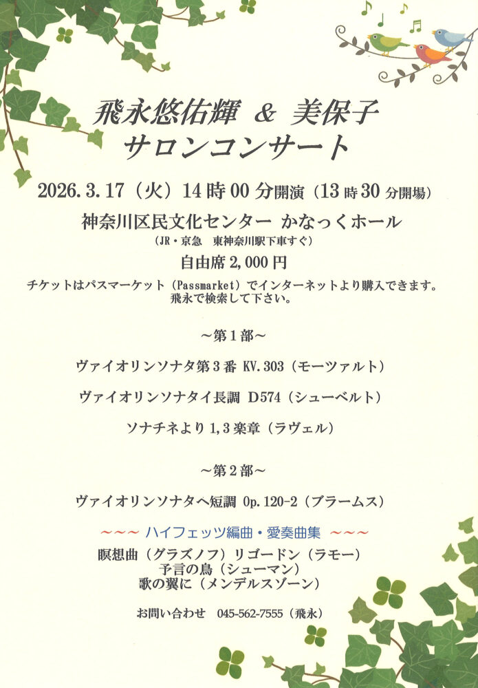 ・飛永悠佑輝(ヴァイオリン) ・飛永美保子(ピアノ)