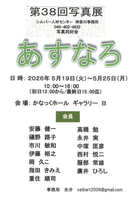 5/19(火)~5/25(月) 初日 13:00~16:00 通常日 10:00~16:00 最終日 10:00~15:00