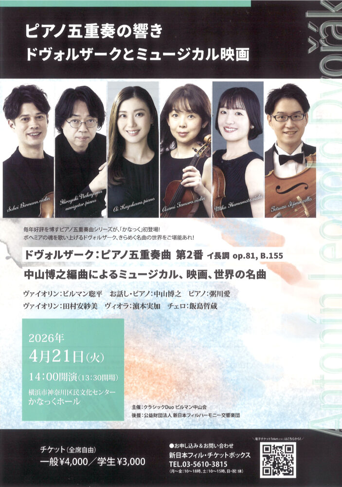 毎年好評を博すピアノ五重奏曲シリーズが「かなっくホール」初登場!
