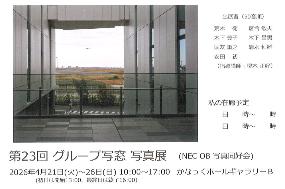 グループ写窓(NECOB写真同好会) 042-721-9896(荒木)