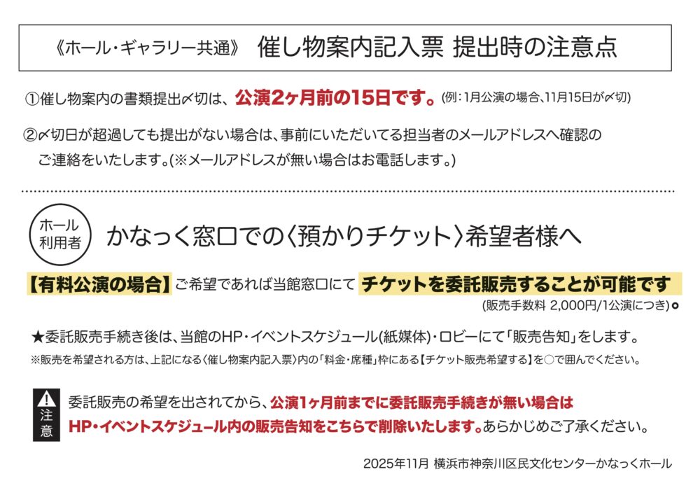 ▶︎ホール・ギャラリーの催し物記入票のPDFはこちらから取得できます。 https://kanack-hall.info/guidance/download/