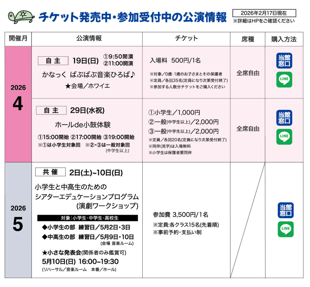 ★主催事業・共催事業の先2ヶ月分(発売分)情報を別途掲載いたします。
